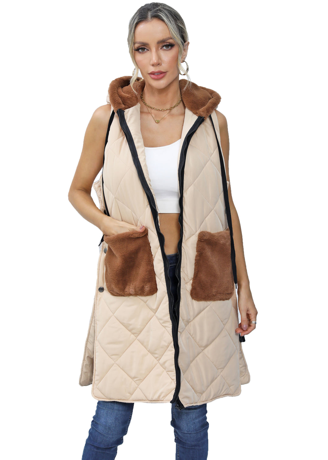Roffe Long Faux Fur Trimmed Quilted Vest