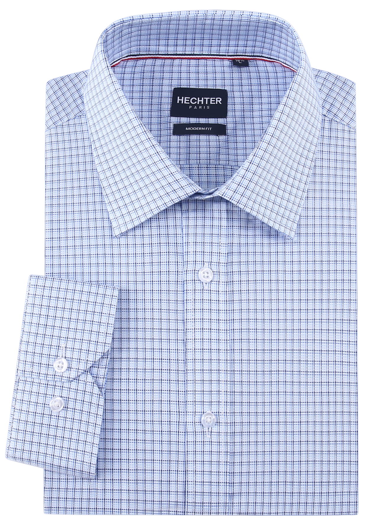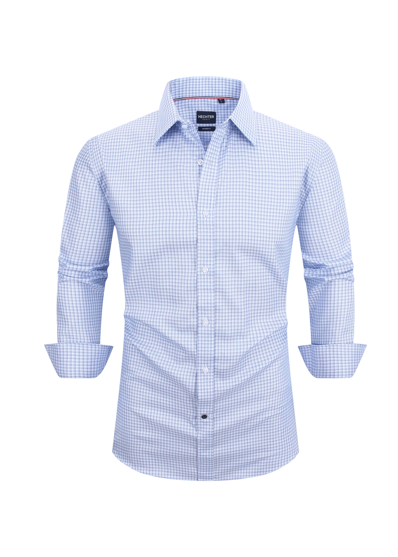 Hechter Paris Blue Plaid Slim Fit Dress Shirt