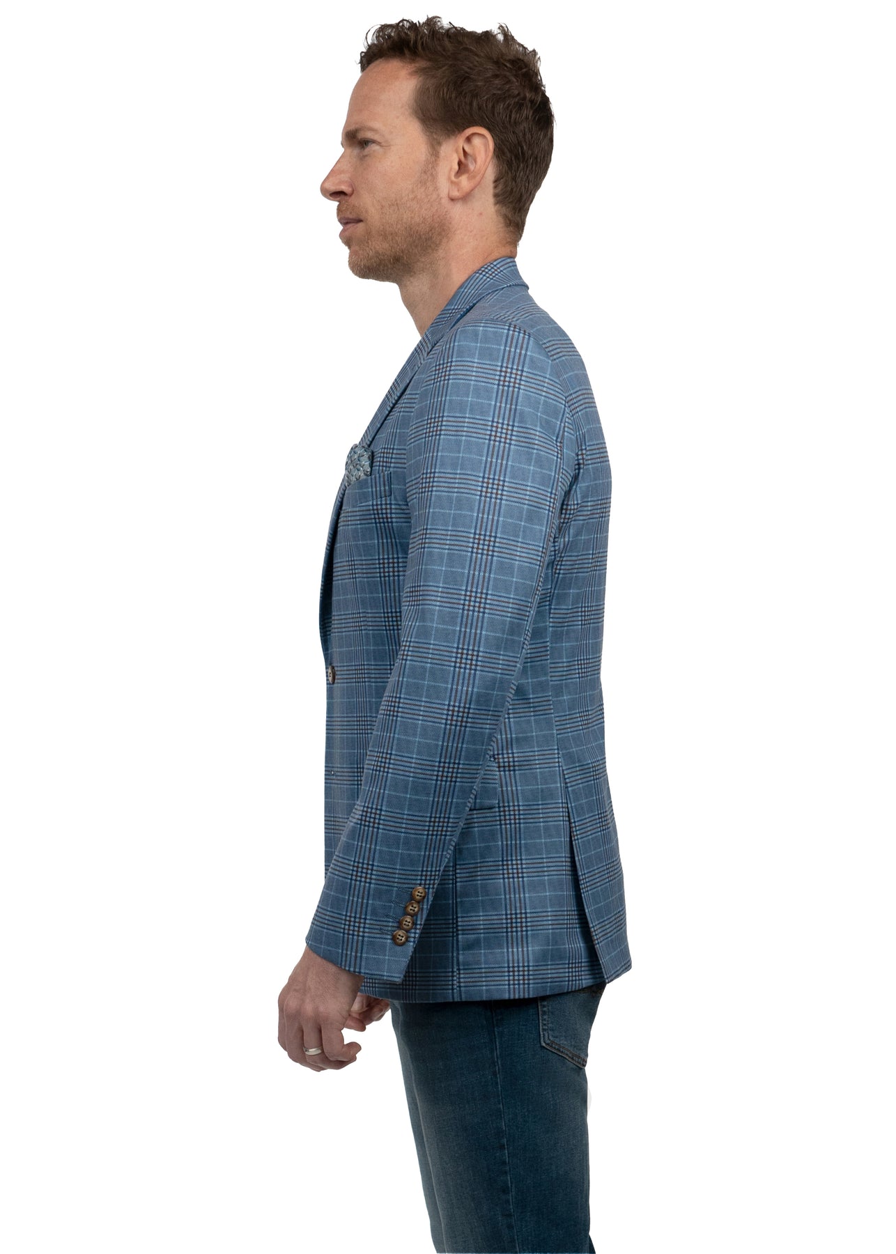 Blazer Design: This 2-button blazer features a notch lapel,two front flap pockets, upper welt pocket, side vent opening, two interior breast pockets with a fancy half lined interior.